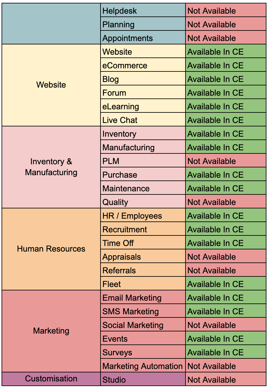 Features: The Enterprise Edition includes exclusive apps and functionalities such as accounting, advanced reporting, marketing automation, and customisations while the community should build it.